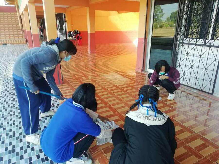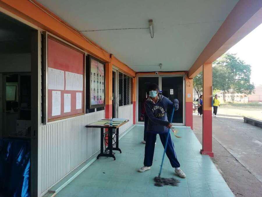 โรงเรียนเทพสวัสดิ์วิทยาได้จัดกิจกรรมทำความสะอาดเพื่อป้องกันโรคระบาดตามสถานการณ์การแพร่ระบาดของเชื้อไวรัสโรวิด-19 S:0